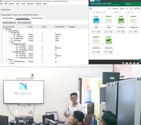 Packet Tracer | Putty/Telnet | Zabbix | CATO Networks | Huawei Controller | UniFi NetworkDuring my training at Ateneo de Davao University, I earned various Cisco badges and certificates that showcase my foundational knowledge in cybersecurity and networking.